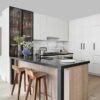 Меблі в кухню виконані в Скандинавському стилі. Біла кухня в поєднанні з деревом – одне універсальних рішень, яке в будь-якому випадку виглядатиме чудово. У приміщенні відразу виникне атмосфера легкості та простоти, елегантності та природності. Конструкція максимально функціональна, використані сучасні та якісні матеріали.